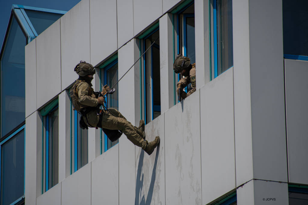 Démonstration des forces spéciales, lors des portes ouvertes de la police cantonale fribourgeoise 2023.